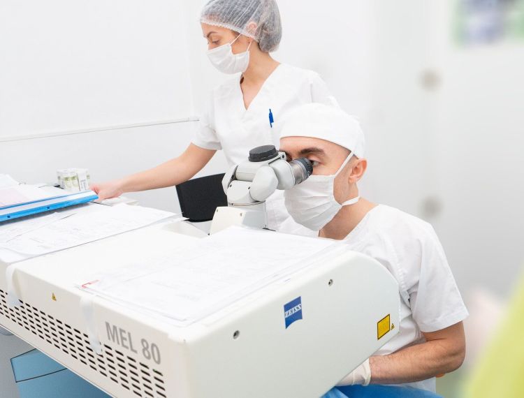 Verlaufskontrolle bei Glaukom mittels Heidelberger Retina Tomograph (HRT). Mit dem HRT wird die Oberfläche der Sehnerven in höchstmöglicher Auflösung abgetastet.